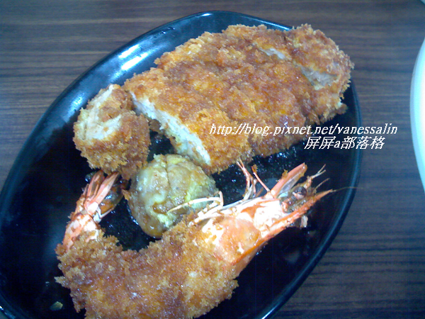 原來所謂的海陸排是指一隻蝦+魚丸之類的+豬排